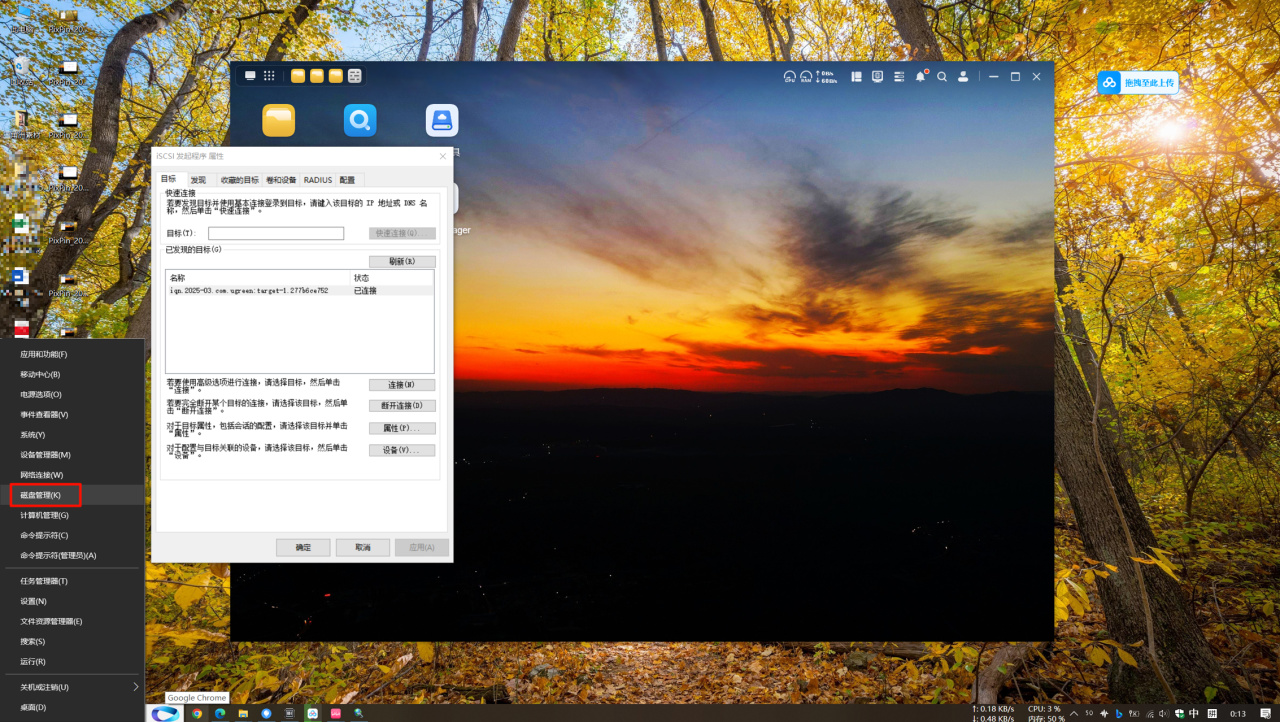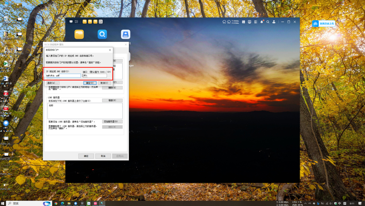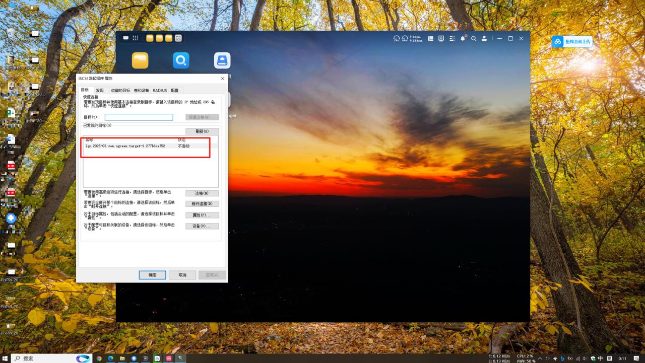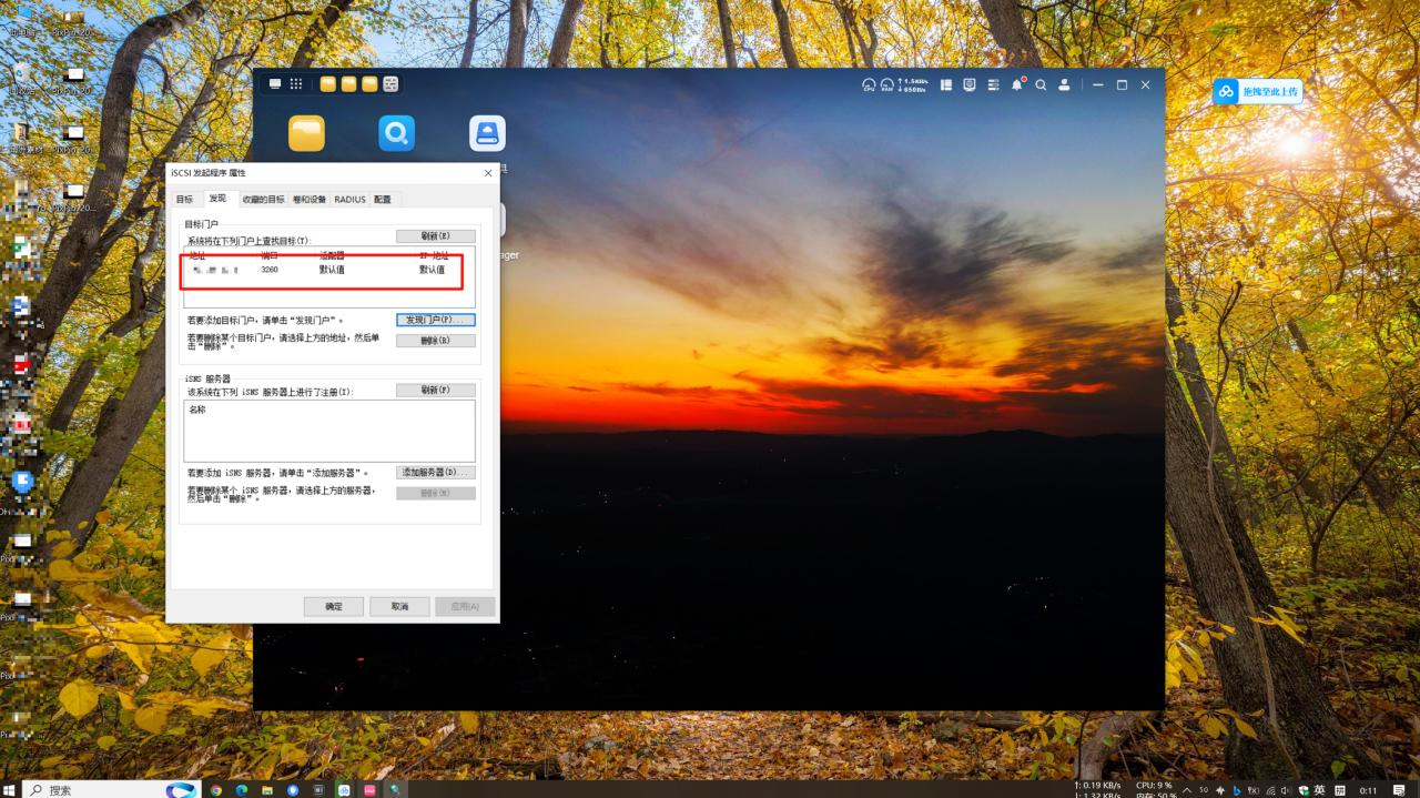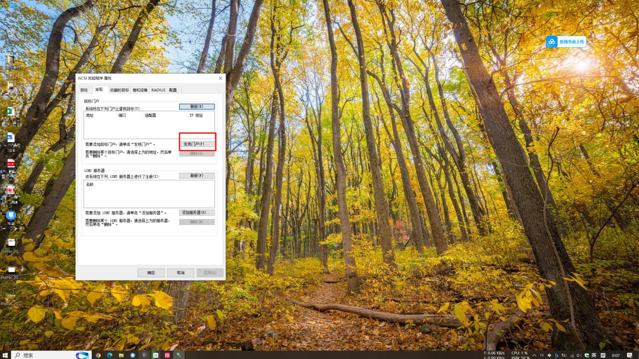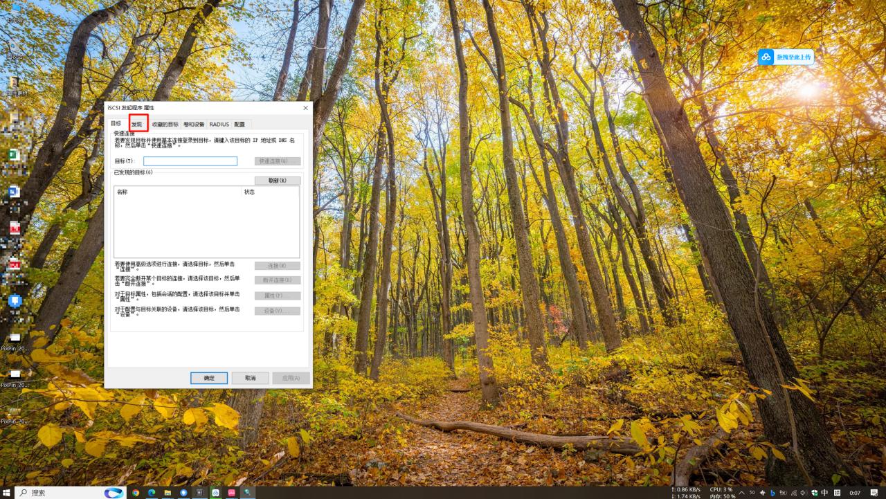 随后成功唤起iscsi发起程序,点击发现选项卡