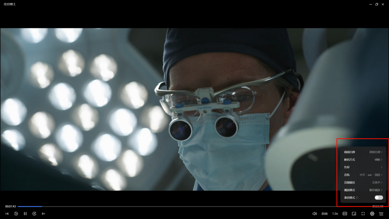 播放器页面可以调节播放速度和画质,还能根据原视频规格自由选择码率。画面比例、视屏解码方式、画面色彩和音轨都支持可调,还能小窗播放,这和用Windows播放器看视频已经没区别了。
