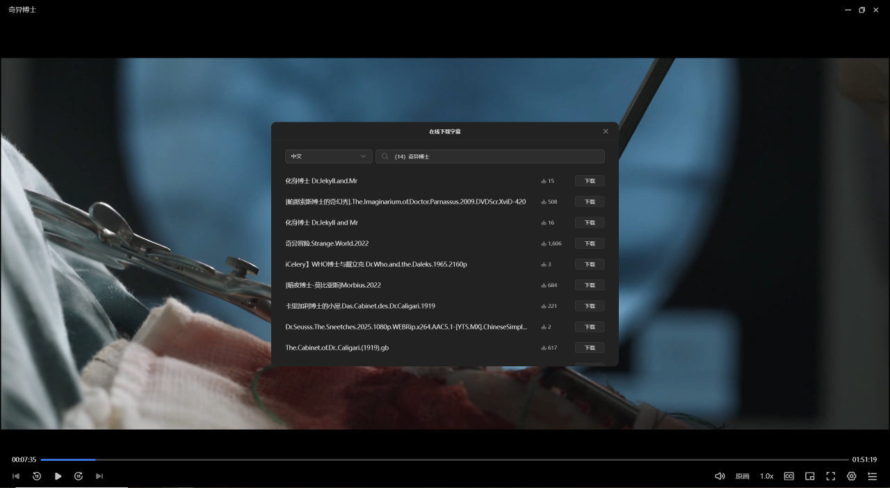 美剧等外国剧的一些生肉没字幕,播放器的播放页面还支持搜索下载对应影片字幕,简直贴心到爆炸。