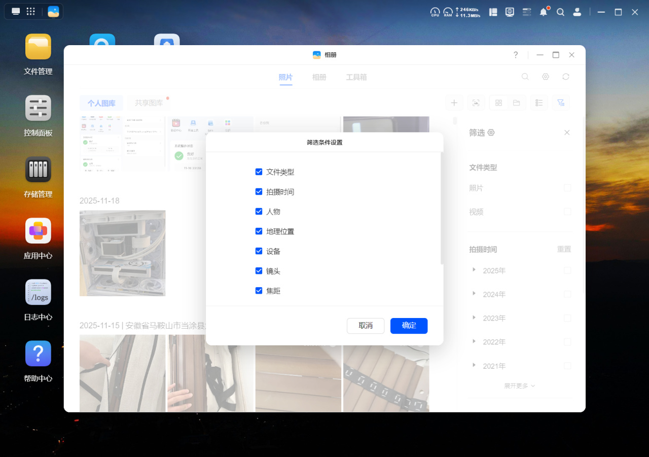 聊完NAS的游戏功能,还得回归到NAS的本质,核心功能相册和影视中心。