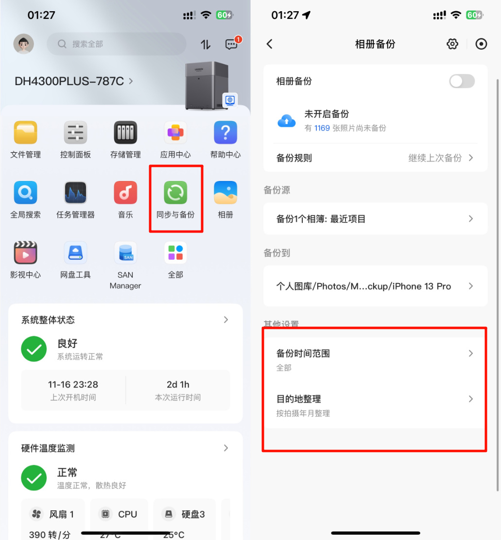 相册支持设备同步与备份,可以设置自动备份以及备份范围,还支持远程异地访问,输入UGREENLink ID+用户名和密码即可随时随地在有网络的环境下访问NAS,浏览照片时的加载速度也很快。