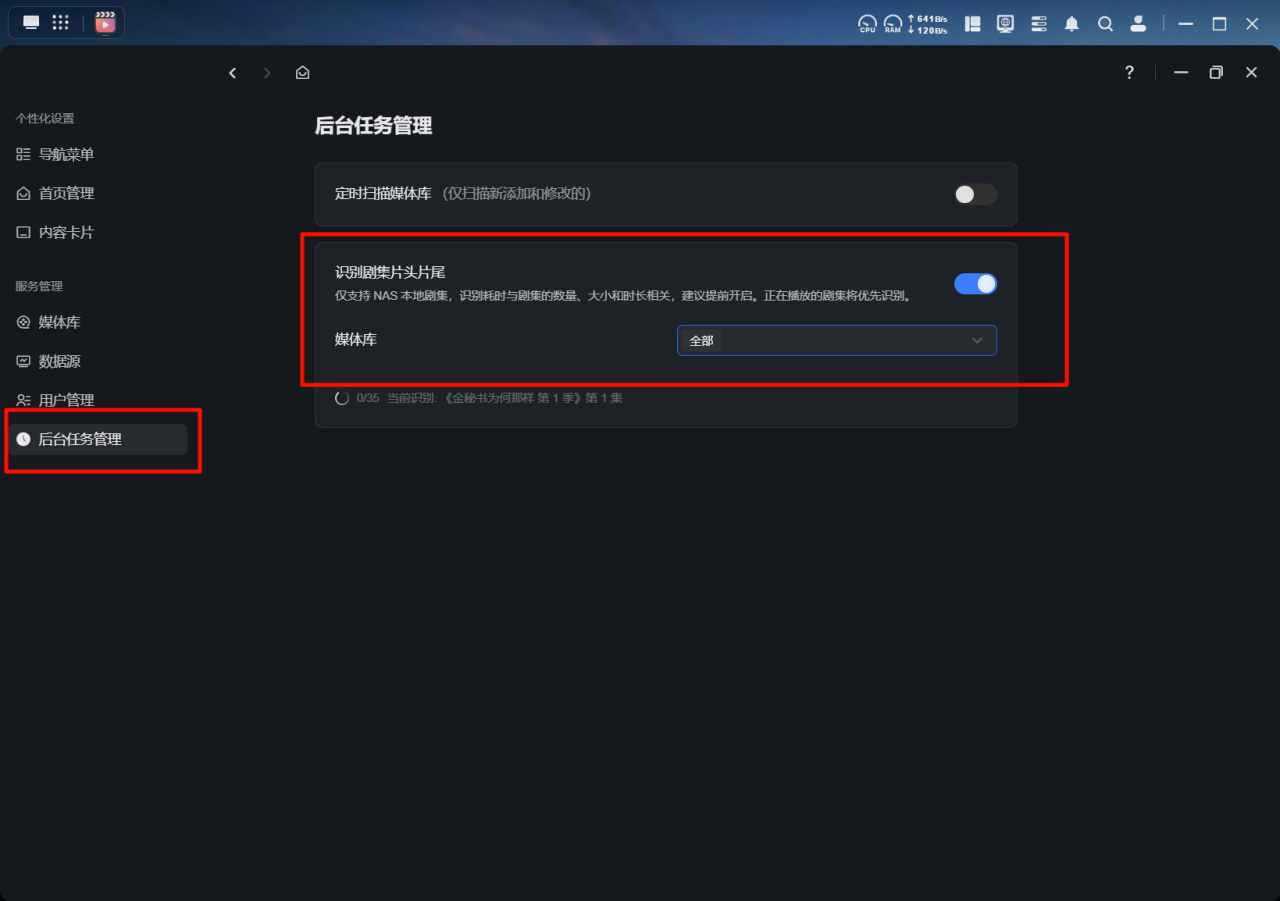 影视中心设置里支持开启识别剧集片头片尾,从而在播放剧集时自动跳过片头片尾。