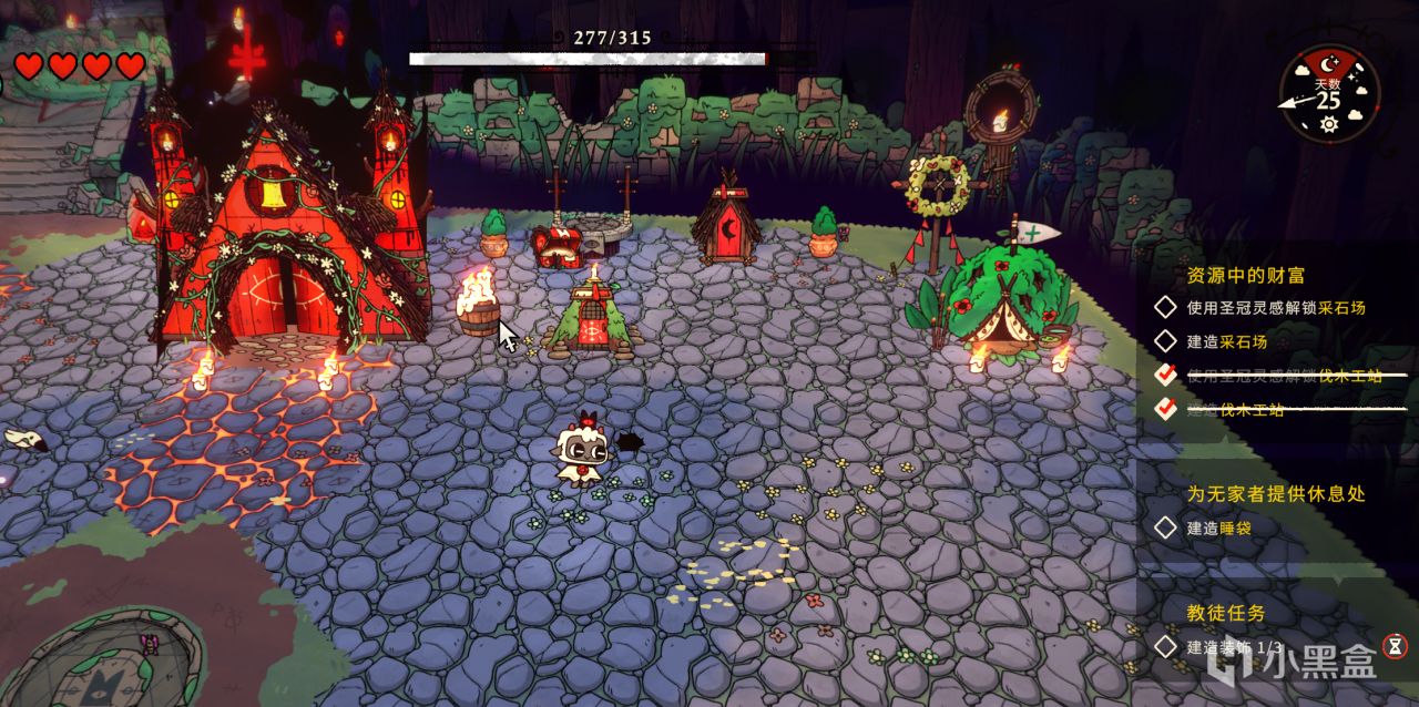 打开steam,列表最上边是她两天一直在玩的《咩咩启示录》,我进去看了看,她给所有的土都铺上了地板,给每一个子民都起了名字.