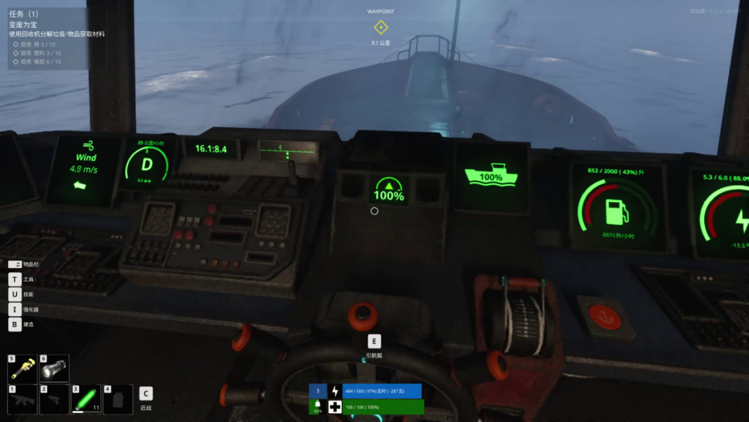 在航行方面,船的运行依赖于电力或柴油等能源,其中柴油的消耗速度较快,尤其在游戏前期,如何高效且安全地获取柴油成为生存的关键挑战之一。