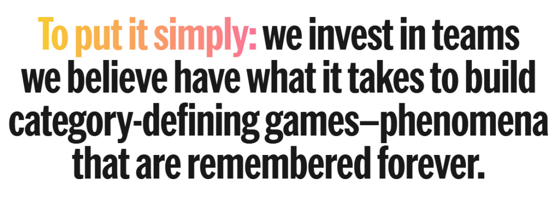 (投资于我们认为有能力打造定义类别的游戏的团队)