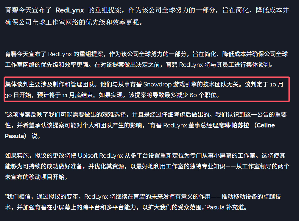 值得一提的是,就在上个月(10月),育碧宣布对RedLynx工作室进行重组,计划将其重点转向手游开发,此项重组提案可能导致约60个职位被削减。