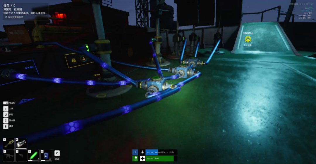 玩家必须像传统生存游戏中的角色需要关注饥渴度一样,时刻留意自己的电量水平。尽管如此,玩家依然可以选择将自身的电力资源输送给特定设备来解决燃眉之需。
