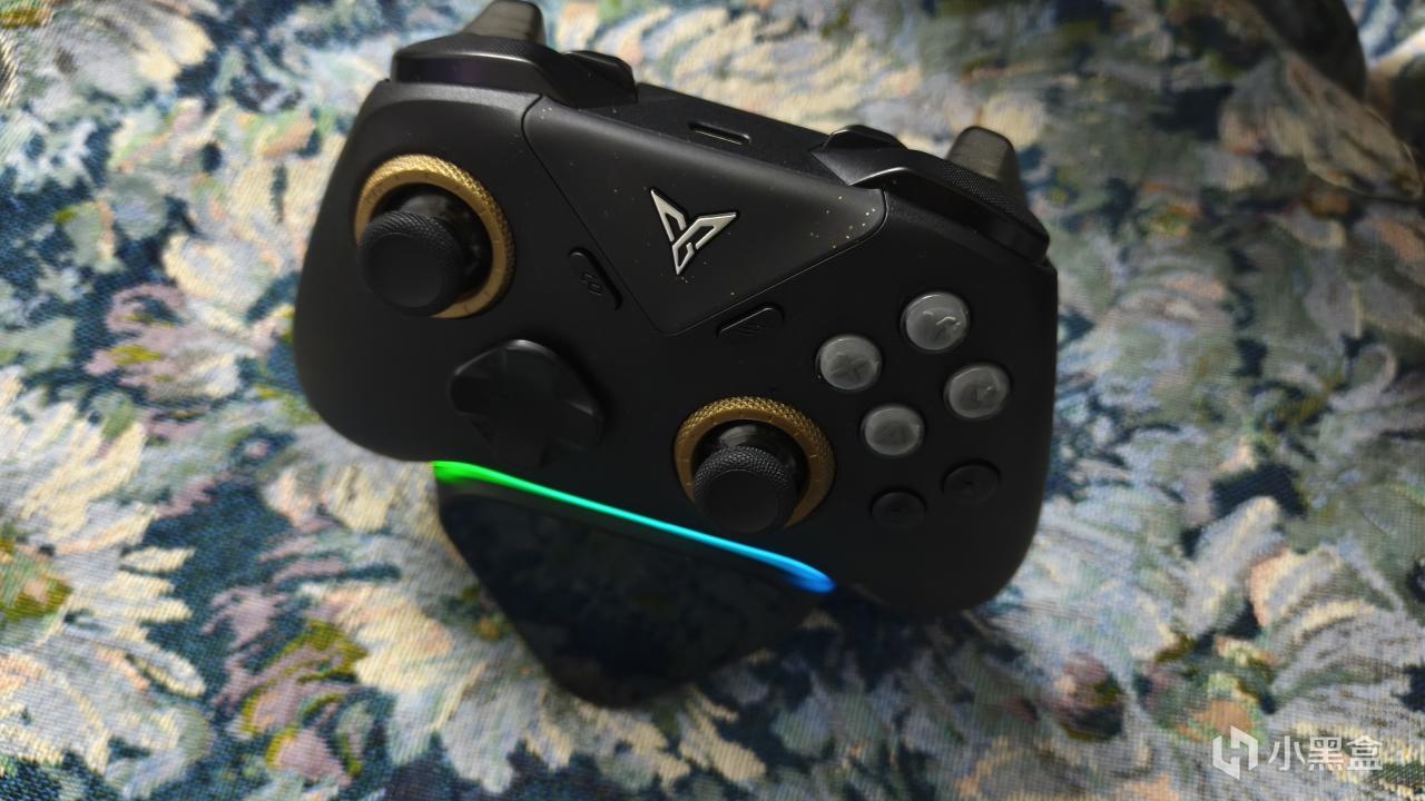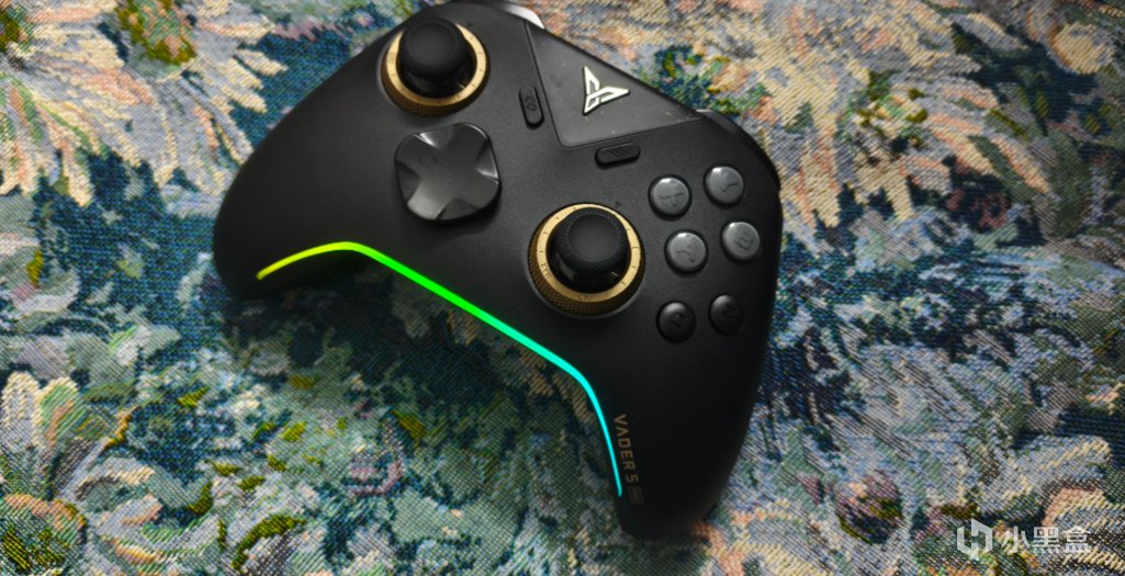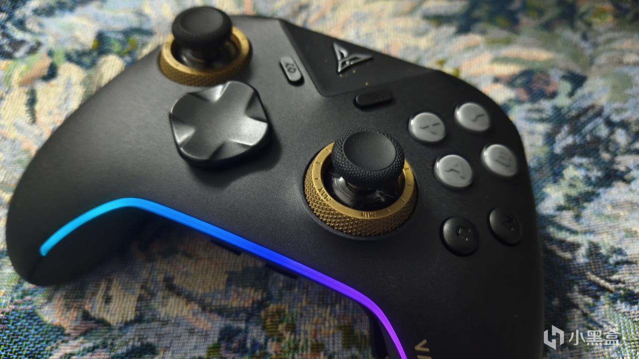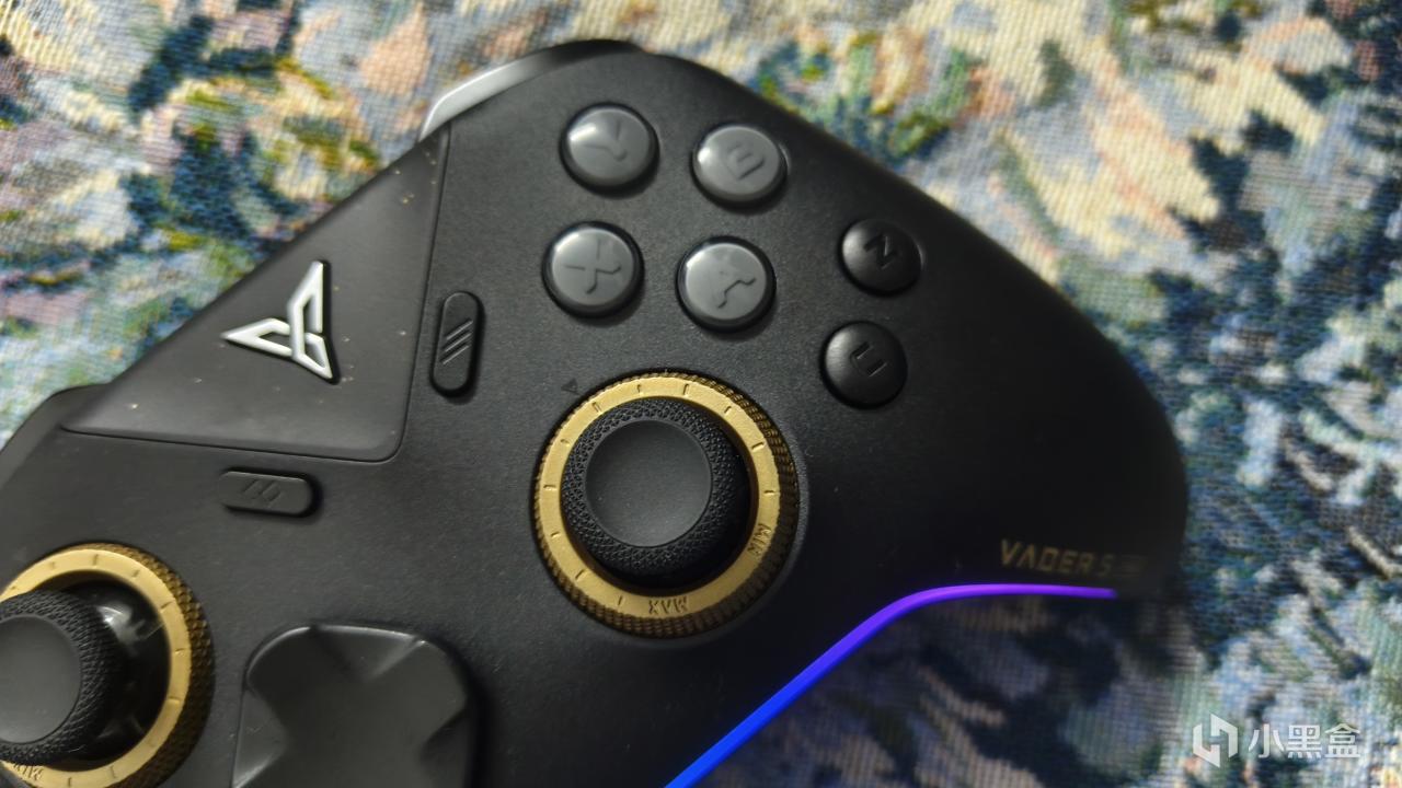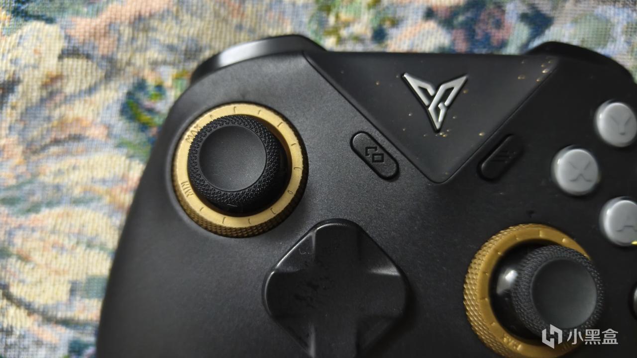 首先还是看到手柄的外观吧,本次的黑武士5由大面积的黑色和少许金色点缀,给我的感觉就是相当的素雅,有先前84联名黑神话的感觉,本次的logo键也变成了开机键,飞智这个logo放在整个外设圈也是相当好看。