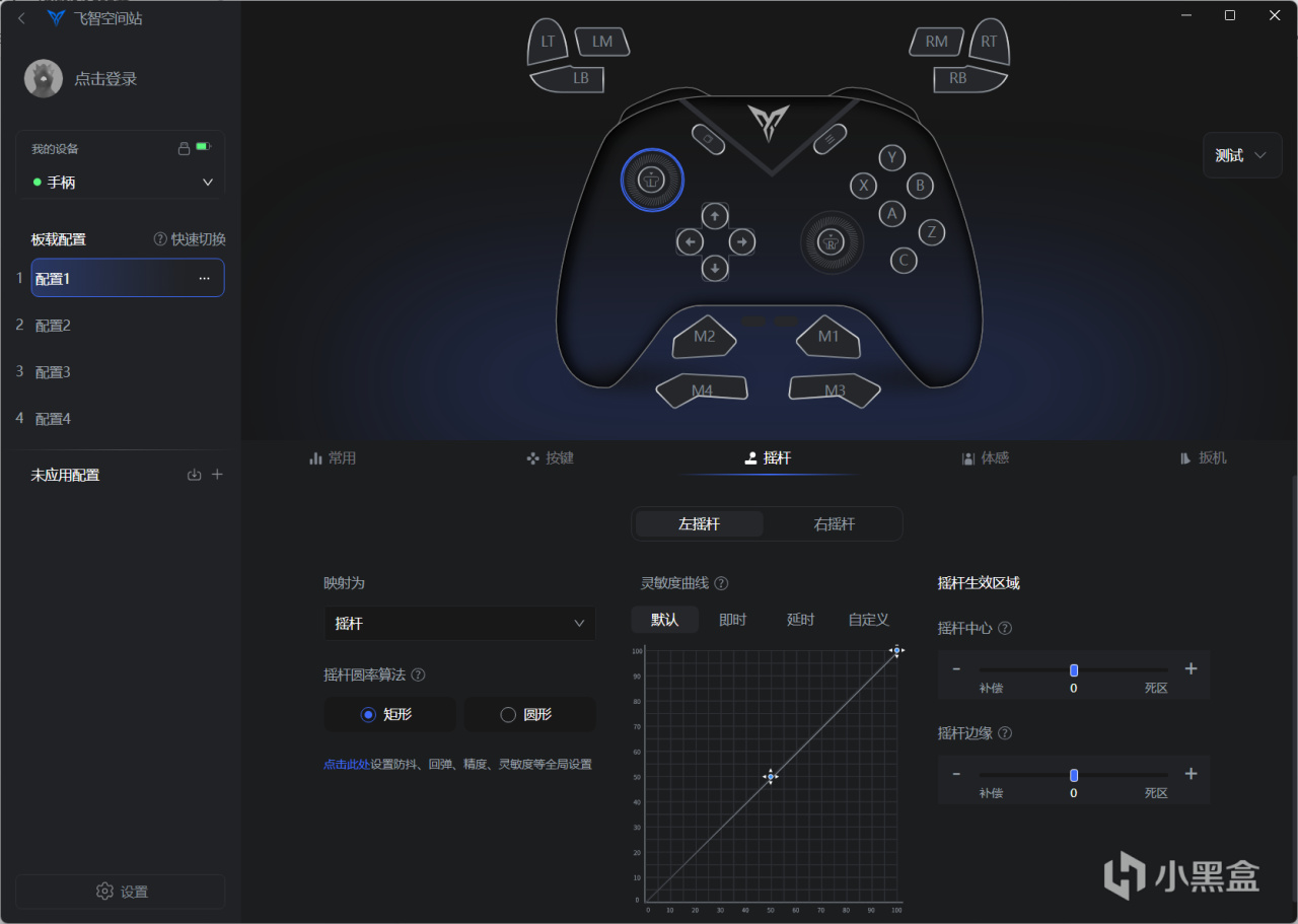 首先还是飞智家主打的力调节杠杆摇杆,通过旋转摇杆外圈的刻度环,可以巧妙的调节,支持在40gf到100gf之间调节摇杆的阻尼,范围相较于市面上的手柄调节范围更广!往左旋减小阻尼,摇杆移动更轻便,控制人物移动会更轻松!左摇杆常在fps游戏中起到开火,将其调重可以令准心更加稳定,一击制敌!