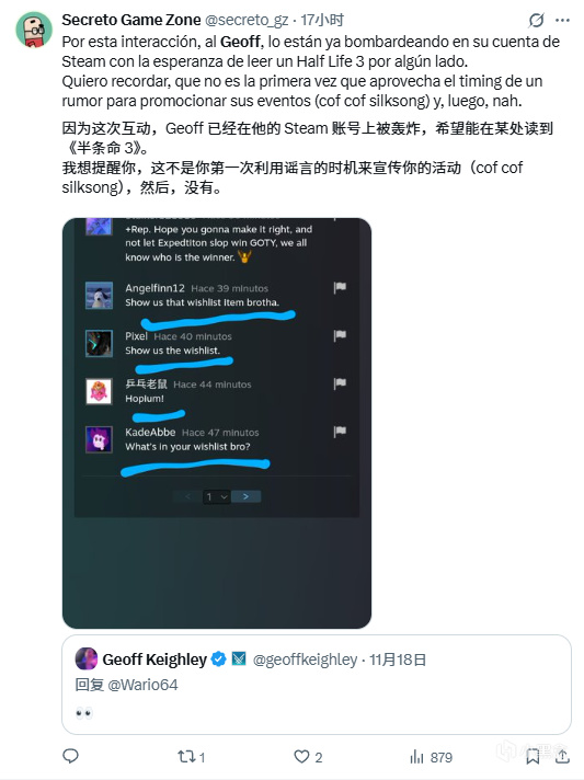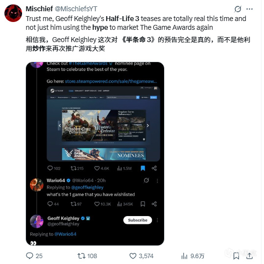 也有網友諷刺說,傑夫這次對半條命3的預告肯定是真的,而不是他利用炒作再次推廣他的活動TGA