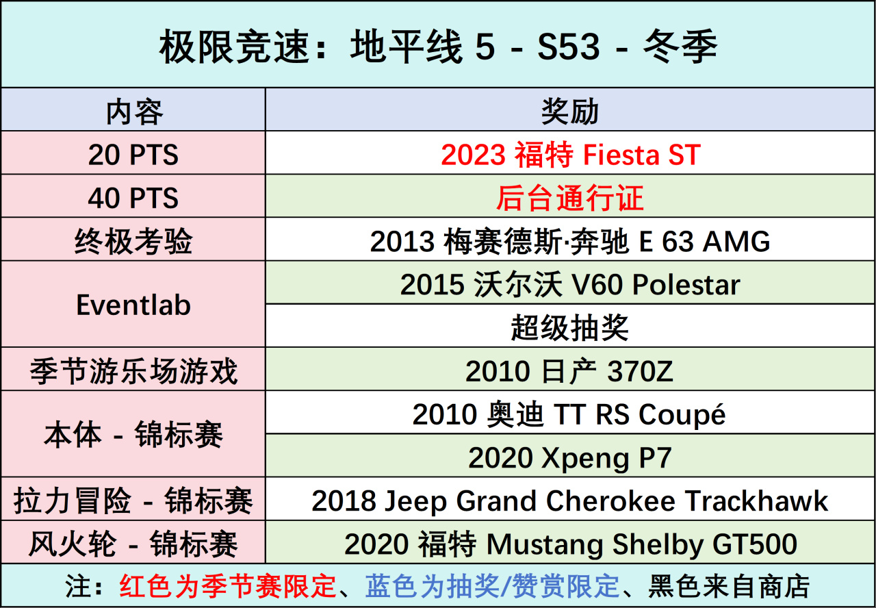 注:FH5 的終極考驗、季節遊樂場均爲三局兩勝制,後者無論輸贏均能拿到獎勵,切勿中途退賽。