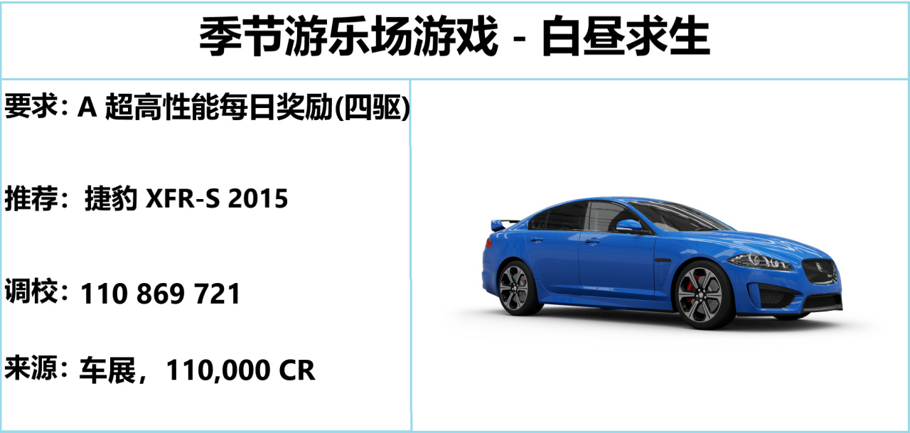 本週特技要求一致,統一用捷豹 XFR-S 來完成,跑完遊樂場就能接着用了。