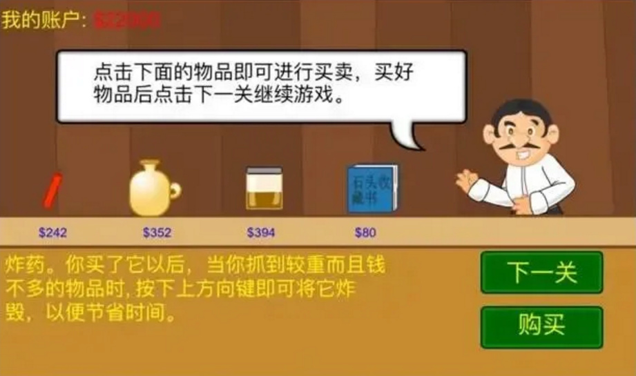 不过残忍的是,完成指定目标后钱也不是你的,为了赢下更多的钱、通更多关,每次赢下一局,都会有个人在后面鞭策你,告诉你需要用余额购买相应物品,以便帮助你更好地升级。