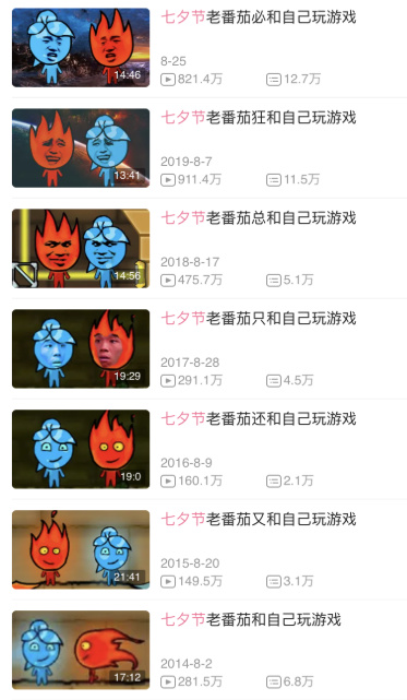 B站上粉丝过千万的顶流UP主老番茄,每年七夕节都会自己和自己玩4399小游戏,而且始终如一,每年都有数百万人观看。
