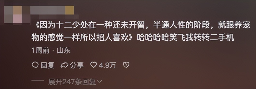 再者來說,從十二少的身份和特點來看,也能衍生出不少有趣的內容,且大都是網友們自己搞出來的,甚至帶點地獄味的樂子——比如什麼情緒穩定像人機、這麼可愛怪不得不讓賣了、臉色發黑一看就是耍大牌之類的怪話。