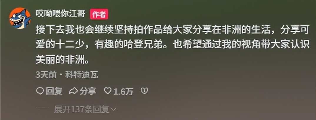 要說起他的身份,那可確實不一般。作爲某非洲小部落酋長(大概就相當於一個村子的村長)的第十二位子嗣,他被形象地稱作“非洲十二少”。而發掘他的人,則是一位生活在非洲的國內短視頻博主“哎呦餵你江哥”。