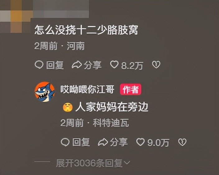 甚至有的時候,還會把江哥本人扯進去。爲什麼江哥拍得這麼對味?因爲江哥的鏡頭裏充滿母愛;爲什麼江哥能對酋長家的孩子動手動腳?因爲他絕對與酋長關係不薄。再加上略有幾分相似的樣貌,那一切都說得通了——江哥與酋長屬於苦命鴛鴦的關係,酋長夫人這個名頭,就被網友們安在了江哥頭上,讓十二少的身世平添一抹傳奇色彩。