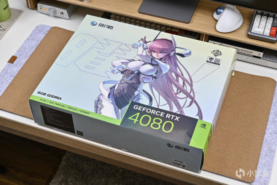 顯卡來自影馳 Galaxy GeForce RTX 4080 16GB 星曜 OC。外包裝非常巨大,中央是二次元形象全新蓋板的星曜娘,機甲風格極具未來感。