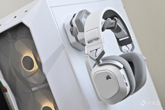 整機白色調,淡金色 RGB 燈效(R238,G232,B170)點綴。