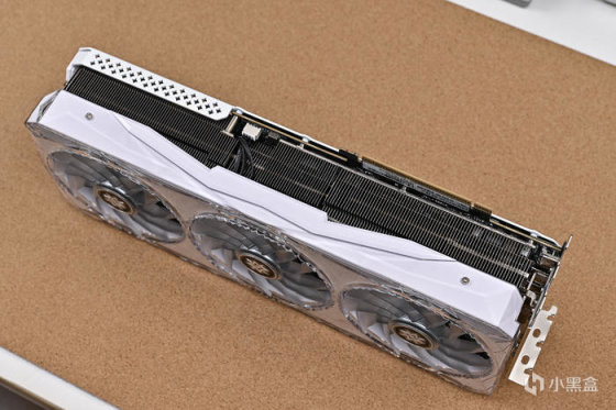 另一側則可以看到影馳 GeForce RTX 4080 16GB 星曜 OC 強大的星卓 III 散熱系統。由全覆蓋均熱板+9 根鍍鎳複合熱管(4x8mm+5x6mm)+大面積散熱片構成,迅速傳遞顯卡熱量。