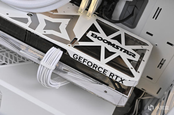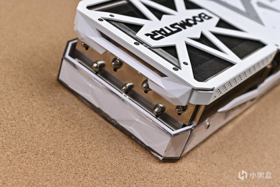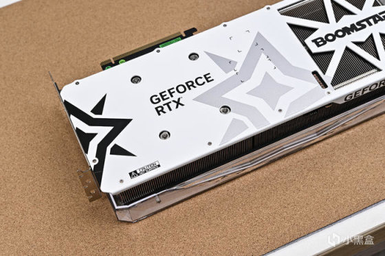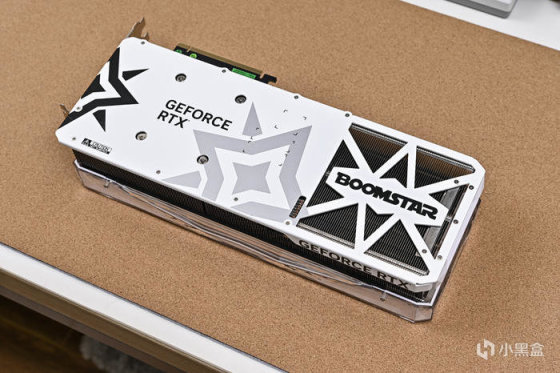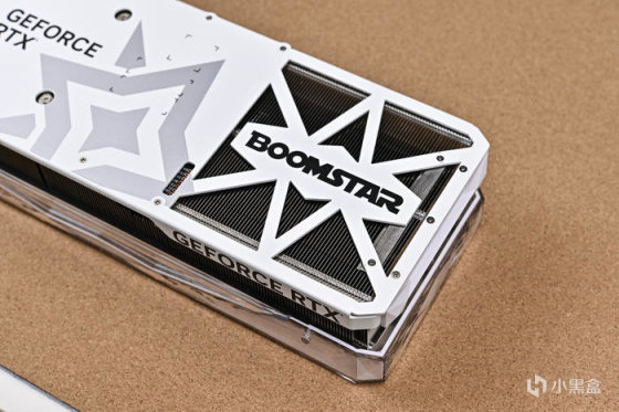 顯卡背板白色設計,左側爲星曜星形造型;顯卡右側則是 BOOMSTAR Logo。