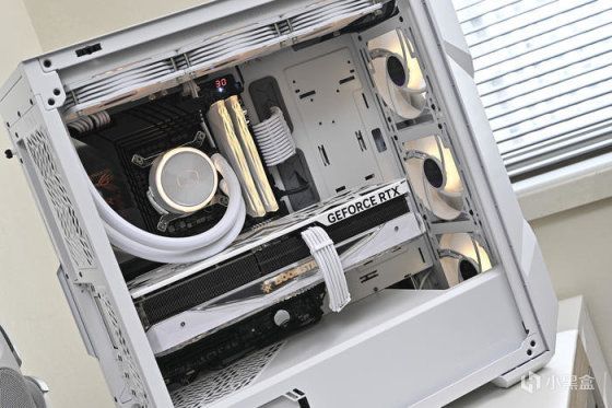 打開鋼化玻璃側板,來看機箱內部各硬件情況。