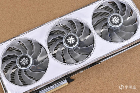 取出顯卡本體,影馳 GeForce RTX 4080 16GB 星曜 OC 採用全新設計的外觀設計,整體尺寸爲:352x153x69mm(含擋板),純白底色正面和背板,四周採用包邊設計銜接,將白色進行到底。產品參數方面,採用 Nvidia Ada lovelace 核心架構,核心代號 AD103-300/301,擁有 9728 個 CUDA,核心頻率 2205 Mhz,加速頻率 2580Mhz,顯存爲 16GB GDDR6X,顯存位寬 256-bit,顯存頻率 22.4Gbps,支持光線追蹤/ DLSS3.0 技術,採用 18+3 相全貼片數字供電,安全且兼顧散熱,功耗 320W。