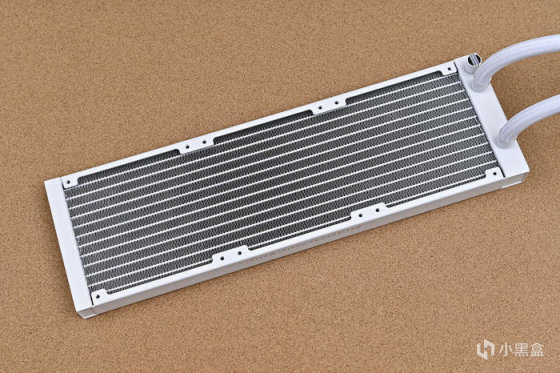 全白化 360 鋁製冷排。尺寸爲:394x119.6x27.2mm。