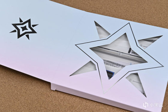 包裝正面合頁磁吸設計,打開後左側是星曜的小型星形標識,右側則是大型的星曜鏤空圖案,裏面的內存可透視觀看。