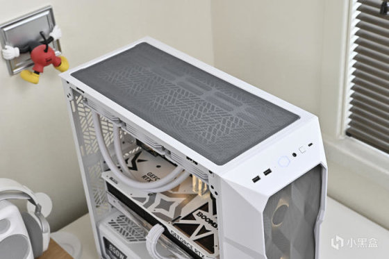 機箱頂部灰色通風 Mesh 網孔設計,磁吸式防塵網方便拆洗。