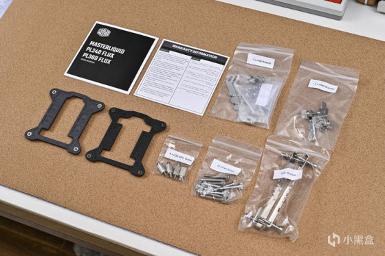 附件方面非常豐富,包括說明書、保修卡,扣具方面支援 intel LGA 1700、1200、115X、2066、2011,以及 AM5、AM4。