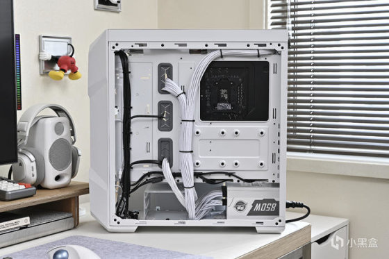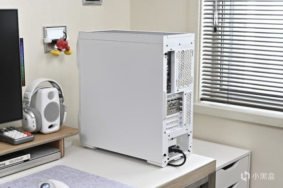 背線展示。機箱預留扎線位合理,擁有 19mm 背線空間,輕鬆理線。