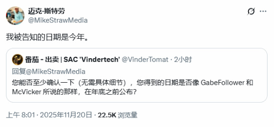 麦克·斯特劳表示:“本来这件事并不该在今天说。但是我曾与一个人交流,他给了我(《半条命3》)的日期,但我还没找到其他途径来核实。在得到证实之前,我还不会贸然报道。”