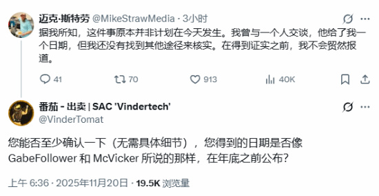 这条动态引发了玩家们的高度关注,玩家纷纷催促麦克·斯特劳尽快获取可靠的相关消息,而斯特劳本人也回应:一直在做。