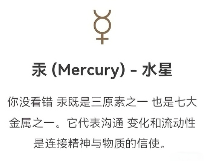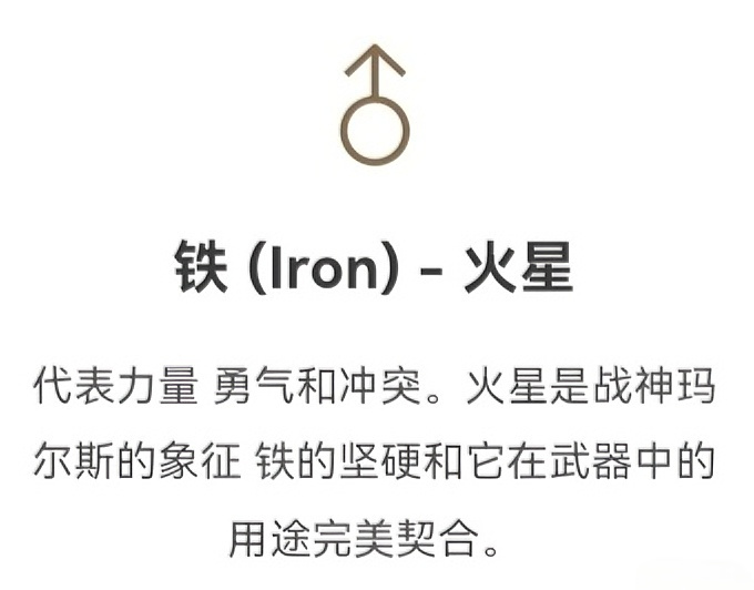 鍊金術和占星術在古代是親密無間的好兄弟。鍊金術士相信 天上的星體運行會影響地上的萬物。他們把當時已知的七大金屬和七大行星一一對應起來 認爲每種金屬都承載着對應行星的“德性”。