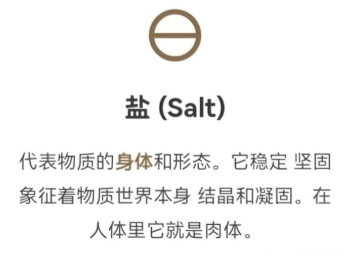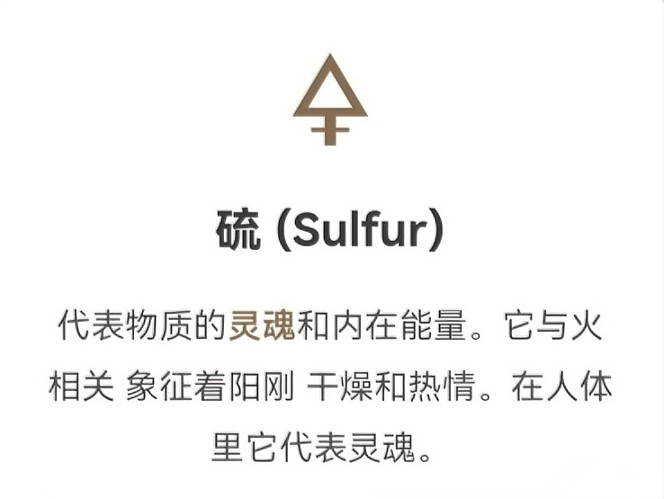 這是由鍊金術大師帕拉切爾蘇斯(Paracelsus)提出的理論 他認爲任何物質都由這三種本質構成。
