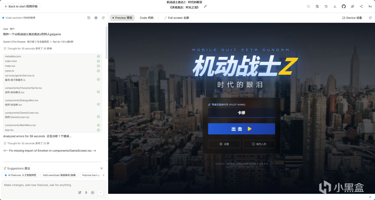 【教程】無基礎gemini3能生成什麼遊戲?gal,FPS,slg應有盡有
