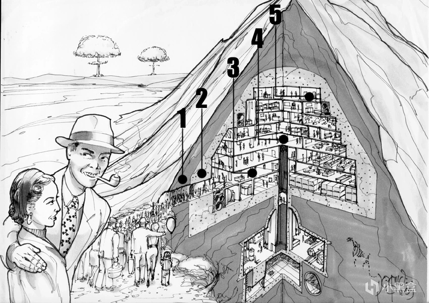在覈爆開始後,全美的避難所立即啓動,數萬名倖存者湧入各自地區的避難所。這些避難所由人類最尖端的科技組成,在地下幾公里建造,哪怕百萬噸級的核彈也傷不到他們分毫,裏面的食物,醫療,社會組織一應俱全,甚至在世界末日之後沒幾天,居民就能若無其事的慶祝聖誕節。