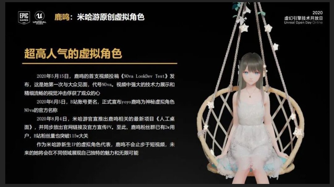 2020年,米哈游用虚幻引擎接连推出的虚拟形象鹿鸣与陆离。