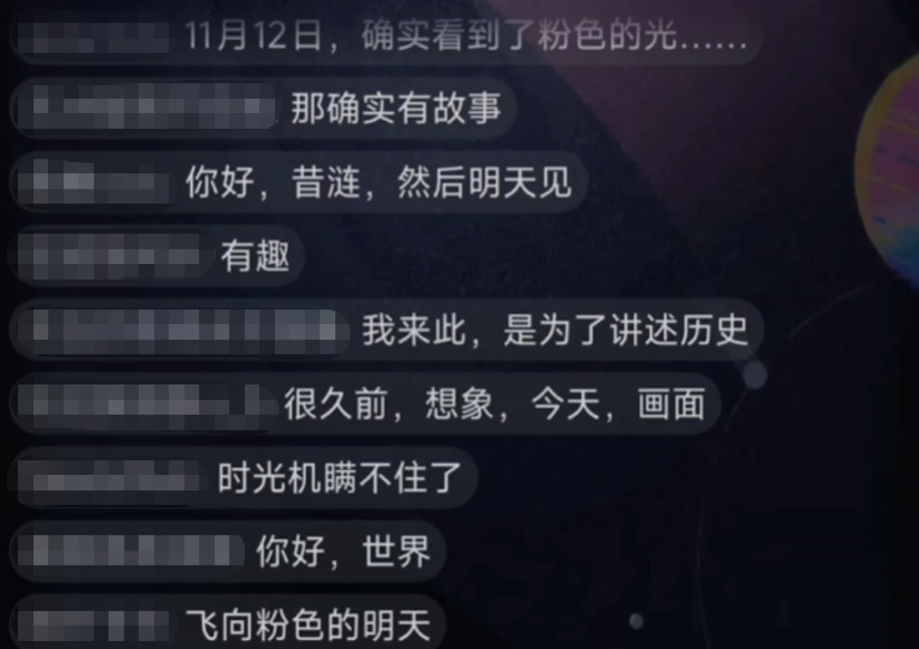 这就要提到在极光出现的前几天,《崩坏:星穹铁道》更新了3.7版本,持续一年的翁法罗斯篇迎来了大结局,在故事的结局中,人气角色昔涟为了翁法罗斯这颗星球上众生的未来,牺牲了自己,临别前,她曾留下愿望,“在十一月的第十二天,漫天繁星被镀上粉色”。