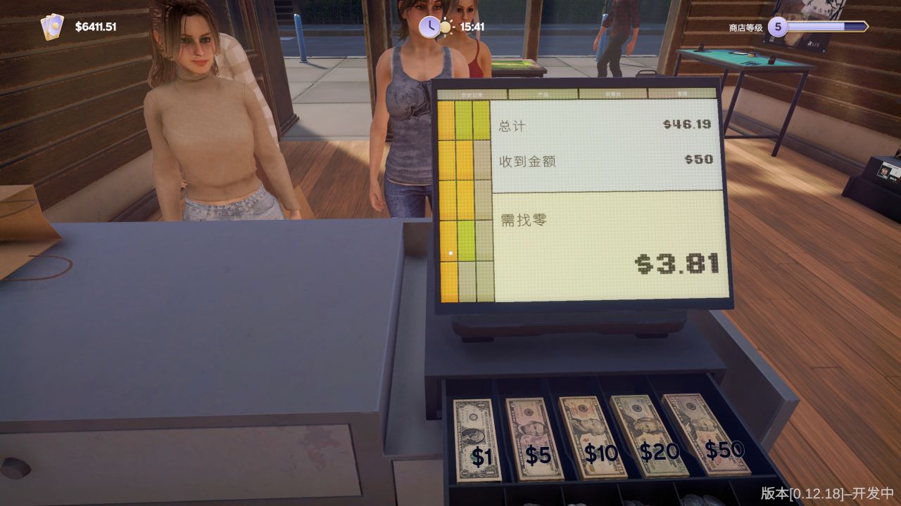 我個人感受最深的是升級節奏偏慢,尤其是明明進度條看似已滿,卻還要再服務幾位客人才能升級,讓急着解鎖新內容的我有些焦急。此外,遊戲也存在一些細節上的不便:比如每次進入收銀臺視角都會強制抬頭,補貨和扔垃圾的操作也略顯繁瑣等。