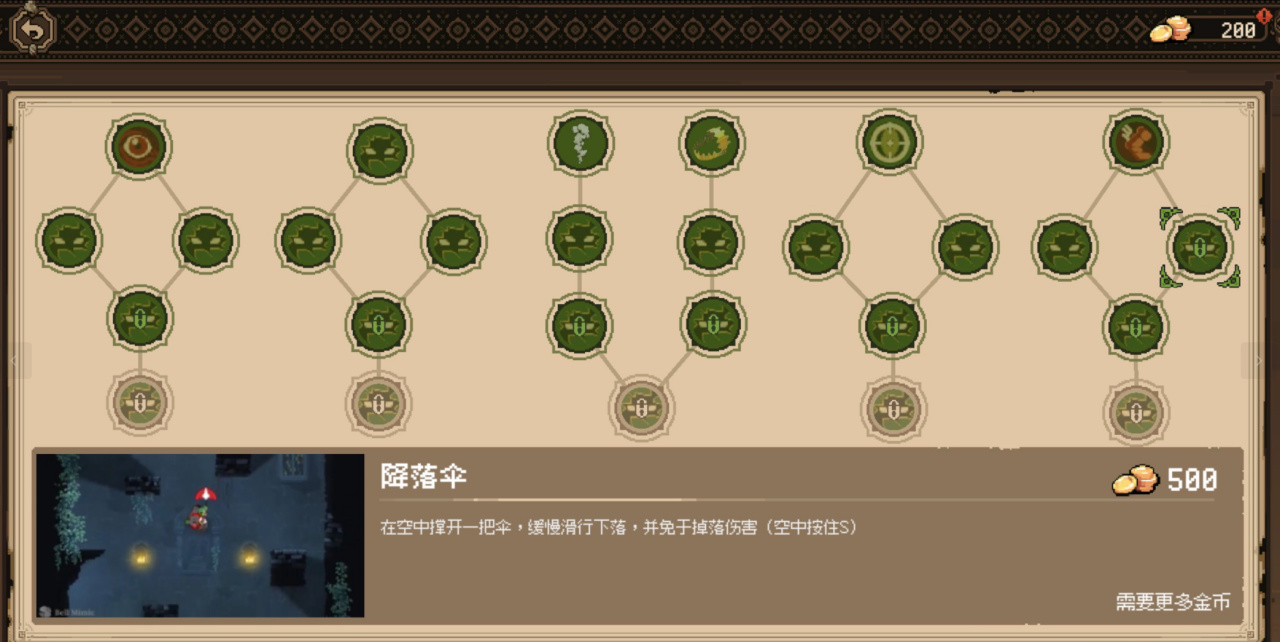 而游戏外也同样有不少的天赋树,我们能够通过逐渐的下本摸金币,卖金币等方式来开启更多的天赋树,像什么垂直上升的钩锁,能够喷气冲刺的放屁能力,各种不同的道具虫子解锁等等都是需要我们一直攒金币购买,肝度上面来说也不算小,也可以看成搜打撤里面升级藏身处一样提升我们自己的能力。