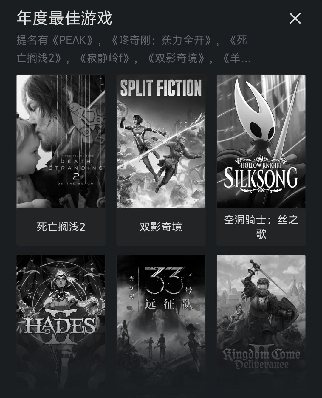 本次提名游戏名单
