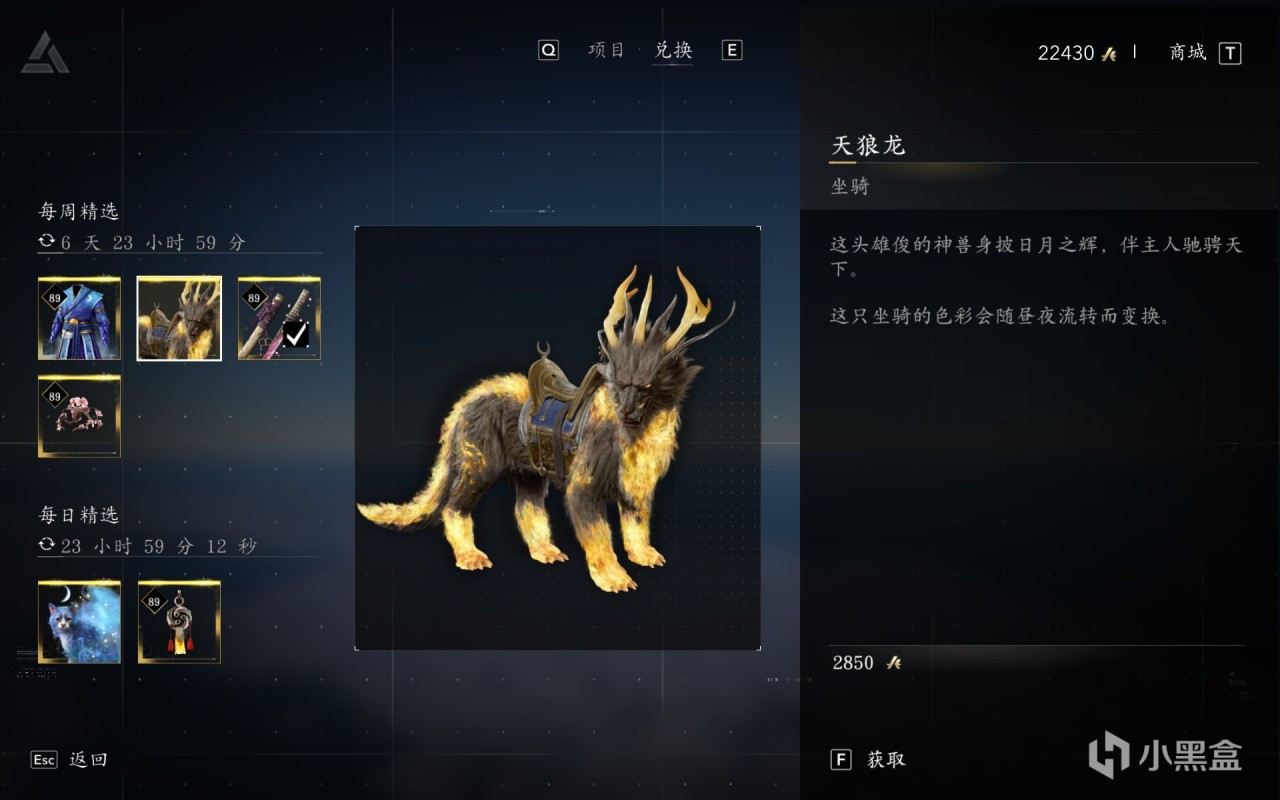 本周依旧五个周常任务,本体四个任务,DLC一个任务,兑换商店已更新。火麒麟坐骑属于必换外观,十分值得一换。更新时间是凌晨,但商店已更新。 以下本周免费兑换的其余商品: