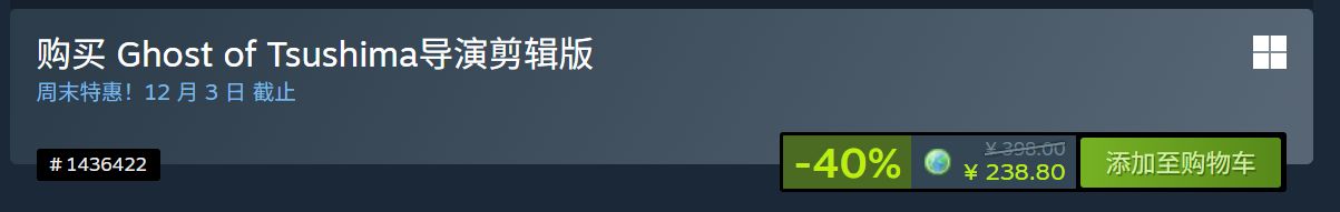 《对马岛之魂:导演剪辑版》迎来6折新史低价!售价¥238.80。