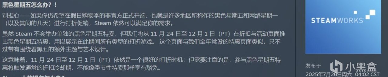 前排先解释下,我昨天搜了,好像是因为秋促提前的原因,这次steam不会直接做黑五活动,都是厂家自发进行,不过24号steam应该会做一个活动页面,如图: