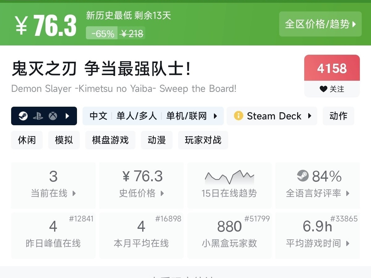 一款基於《鬼滅之刃》動漫的格鬥遊戲。通常包含劇情模式和對戰模式,玩家可操作炭治郎等角色體驗原作劇情。