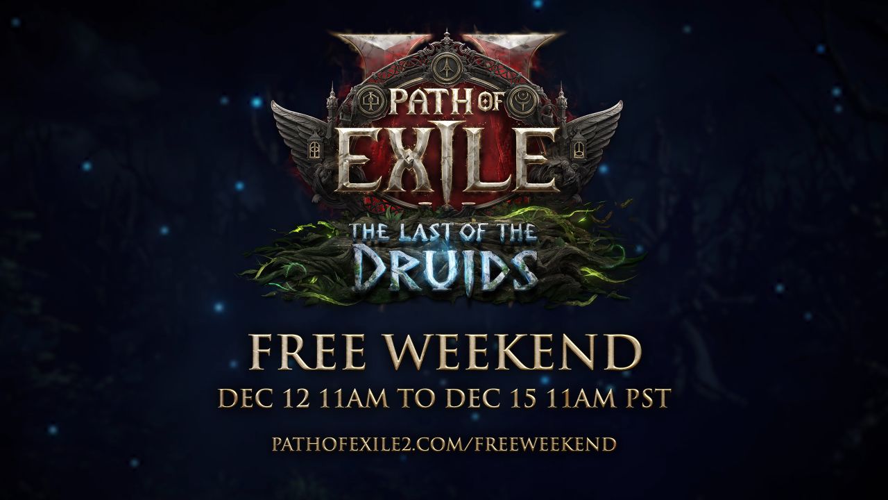 在北京时间的12月13号,我们在全平台上开放为期三天的免費游玩。在免費游玩中你能体验到《流放之路2》迄今为止所有的內容,包含最新的「最后的德魯伊」版本更新!