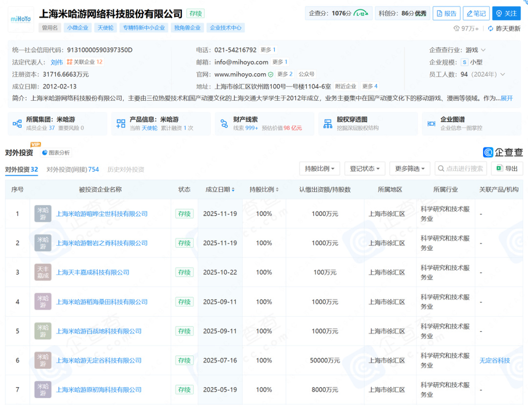 想必大家也清楚,现阶段游戏行业对于AI技术的重视已经来到了前所未有的地步。单就米哈游而言,他们今年已经连设至少7家科技相关的新公司。