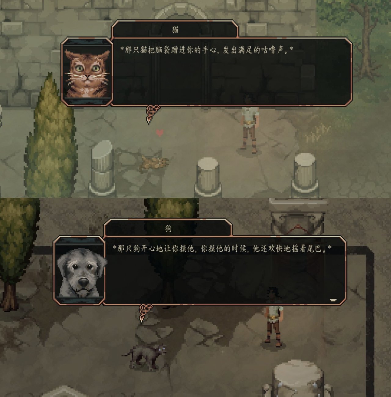 此外游戏里还有很多小猫小狗供我们抚摸。